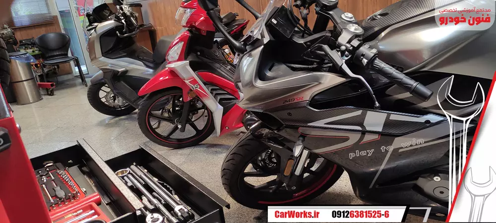 در ضمن تمامی تجهیزات و ابزار های تخصصی و به روز در این دوره به کار گرفته می شود و کارآموزان می توانند به صورت عملیاتی در انواع موتور سیکلت آنها را به کار بگیرند و کاملا آشنا شوند .